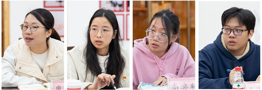 座谈中,同学结合自身实际,分享了学习领会习近平总书记视察广西的重要讲话精神的感悟,大家纷纷表示,作为学生干部须牢记习近平总书记视察广西的重要讲话精神,凝聚起牢记嘱托、感恩奋进的力量,以身作则,努力学习,提升自我,为奋力谱写中国式现代化广西篇章贡献青春力量。