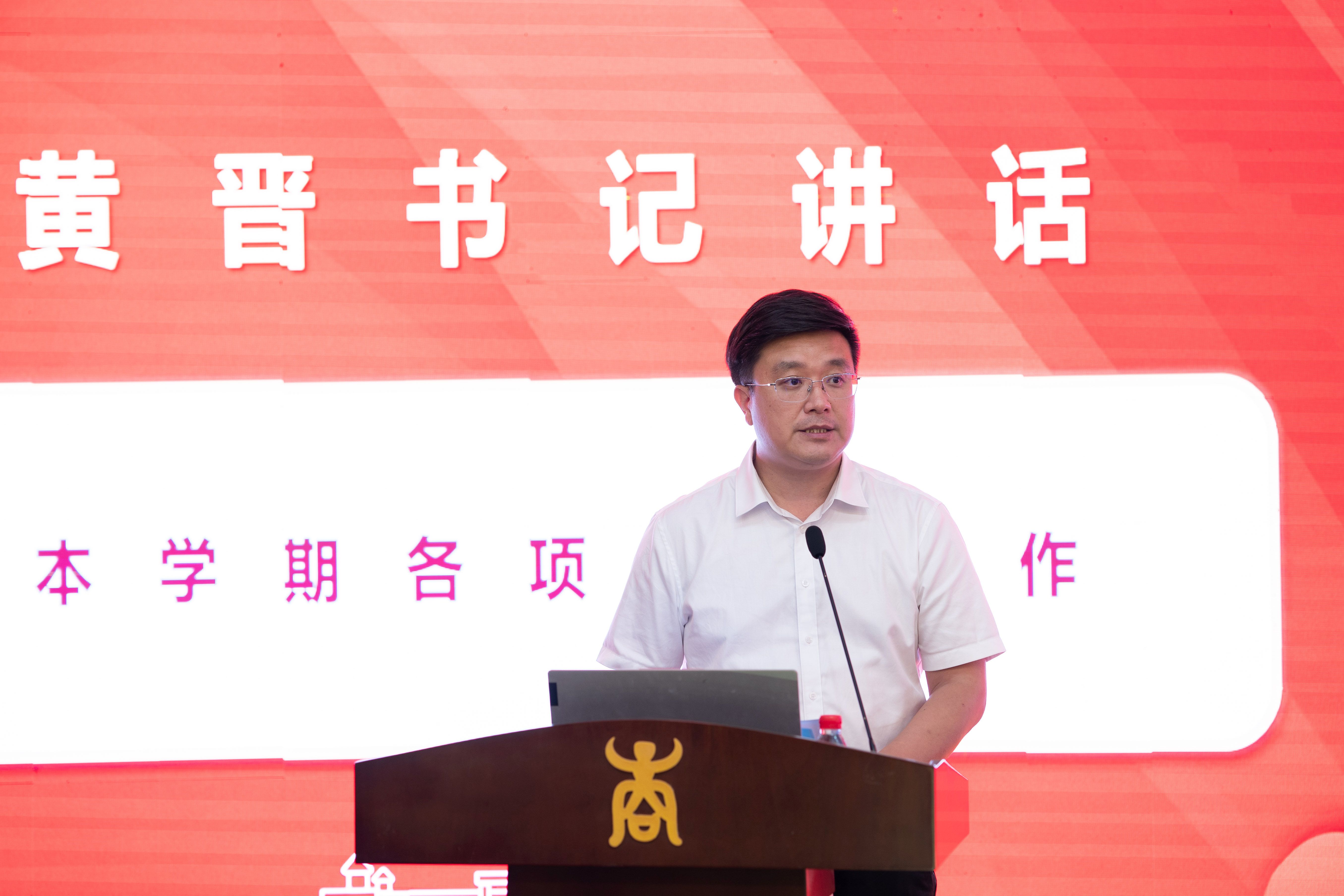 党委书记黄晋、院长朱帮助、党委副书记肖克宁,副院长朱少英、申韬、廖东红、韦铁出席会议,全体教职工参加了会议。会议由朱帮助主持。