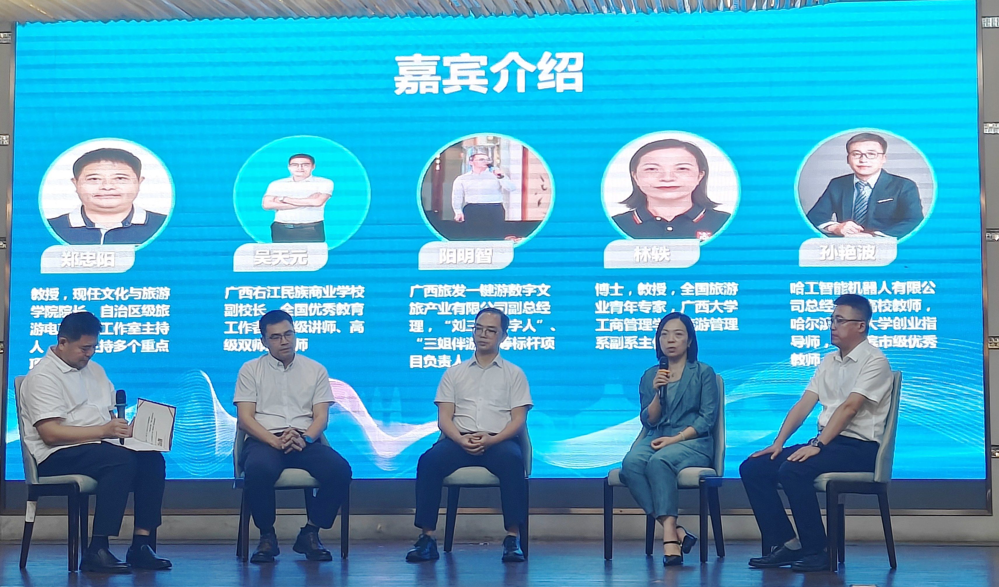 论坛圆桌环节聚焦“文化旅游与大健康发展的新商文・工科结合路径”。林轶作为特邀嘉宾,结合广西产业实际与高校育人使命展开深度分享,并针对产业转型升级需求,提出文旅与大健康产业融合发展亟需“三懂”复合型人才——既深谙文化旅游资源开发、大健康服务理念,又具备商业运营思维,还能掌握人工智能、大数据等工科技术工具。