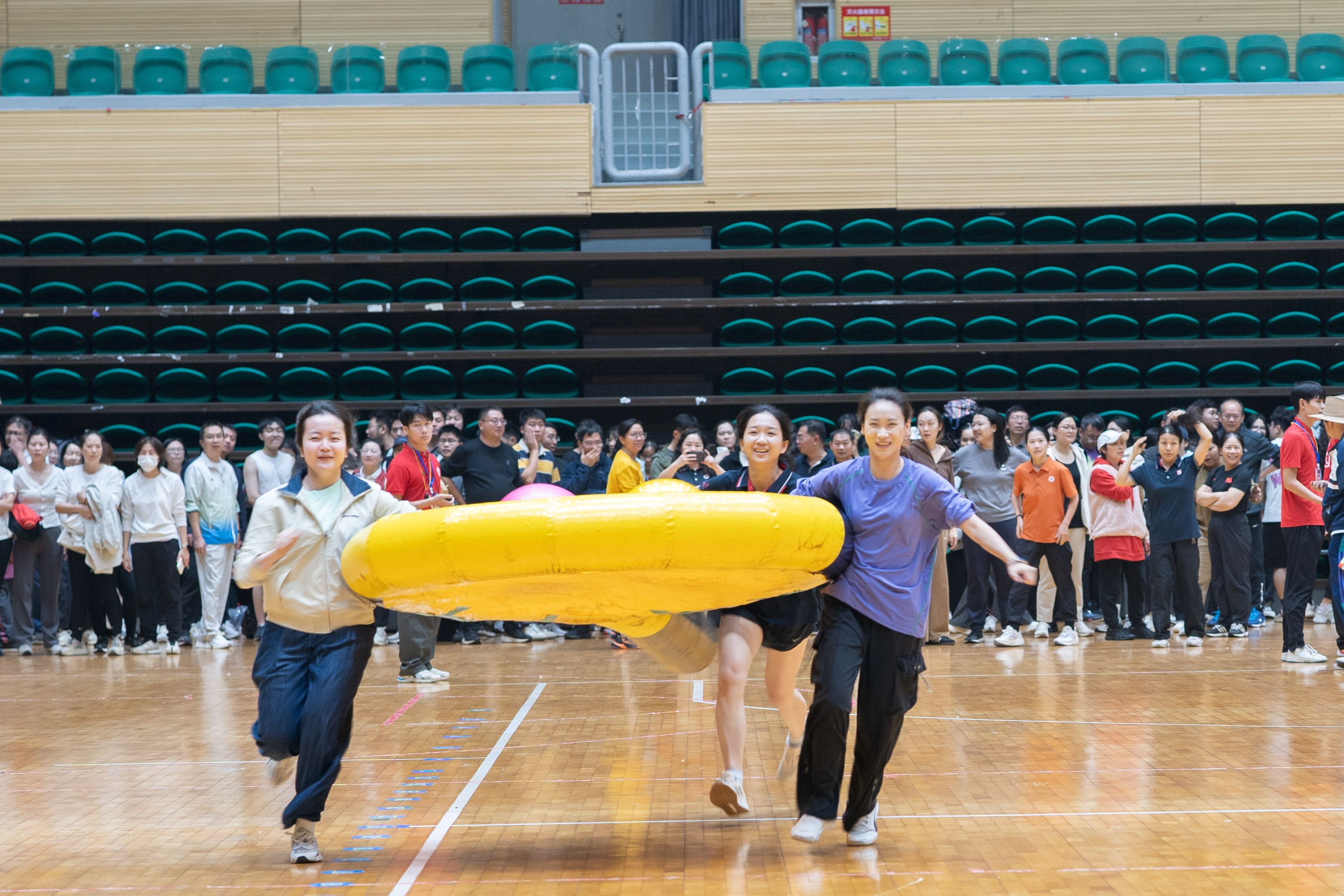 趣味运动场上,教师们暂别讲台,化身活力四射的“运动达人”。龟兔赛跑中,他们齐心向前,传递团结信念;同舟共济项目里,众人有条不紊,展现默契配合;击鼓颠球环节中,他们屏息凝神、精准控球,将团队协作的智慧发挥得淋漓尽致。尽管雨丝不断,但赛场上笑声与掌声此起彼伏,充分展现了麻豆a片