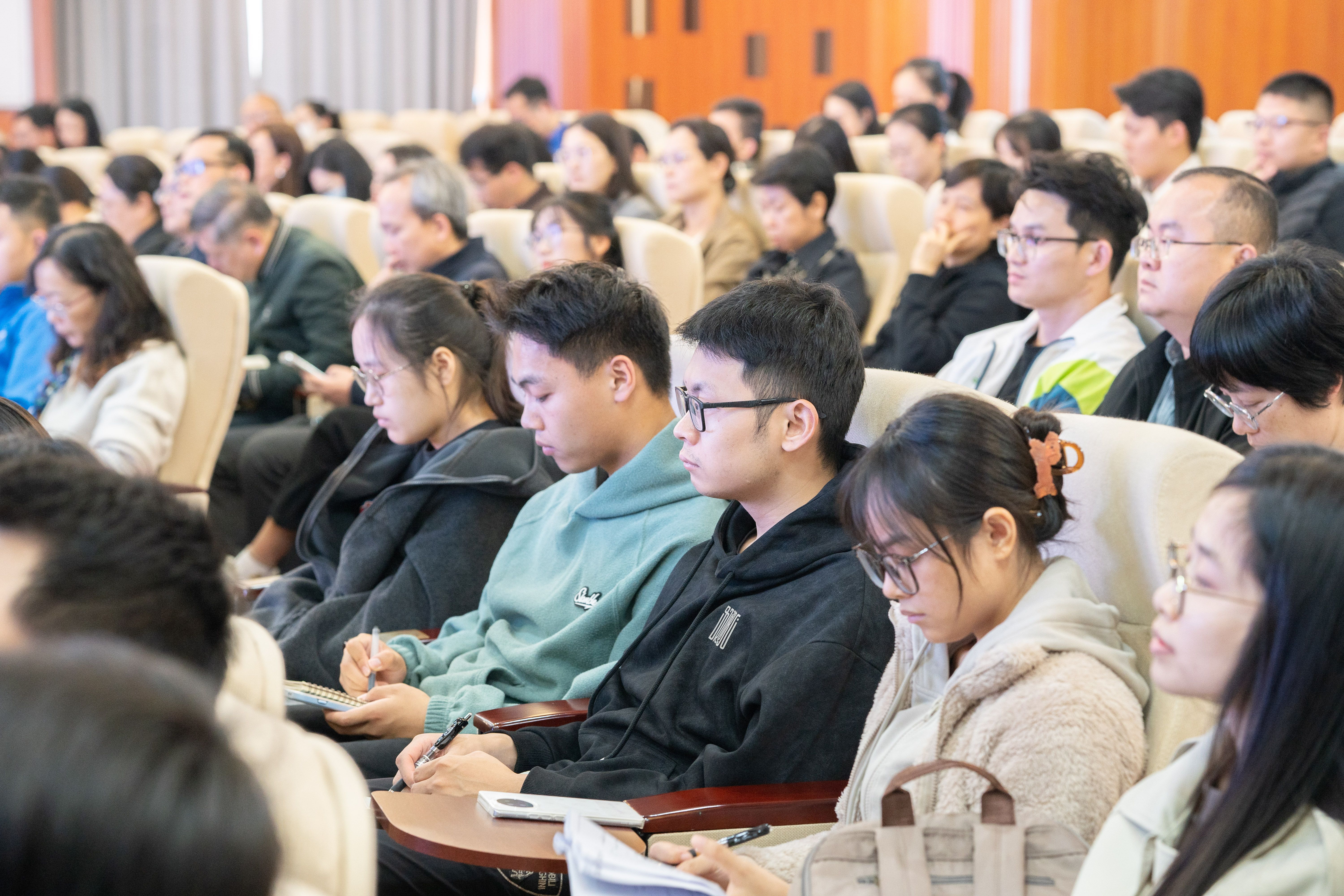 宁旭初从“筑牢思想根基、找准定位坐标、明晰实践路径”三个方面讲授。他指出,“深学笃行”是基础,“实干担当”是关键。全体党员要持续深入学习党的创新理论,特别是党的二十届四中全会提出的“六个坚持”原则,并将其贯穿于学习、科研与工作实践中,真正把学习成果转化为推动发展的实际成效。他系统回顾了麻豆a片