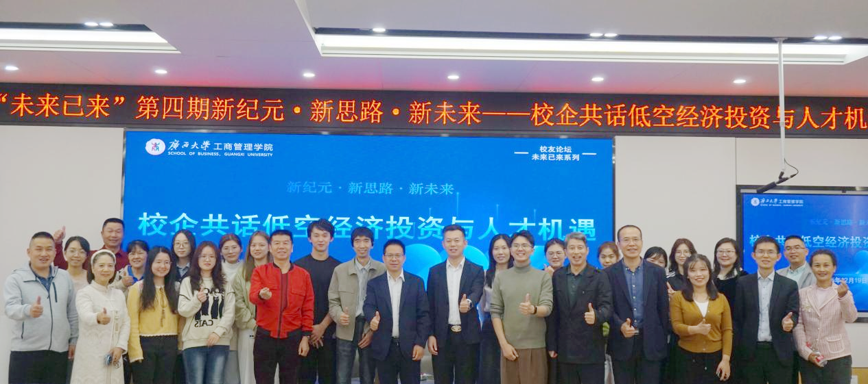将持续深化“未来已来”论坛平台建设,推动校友经济与地方产业融合,助力广西把握低空经济新机遇,培育新质生产力,为区域高质量发展注入智慧与活力。