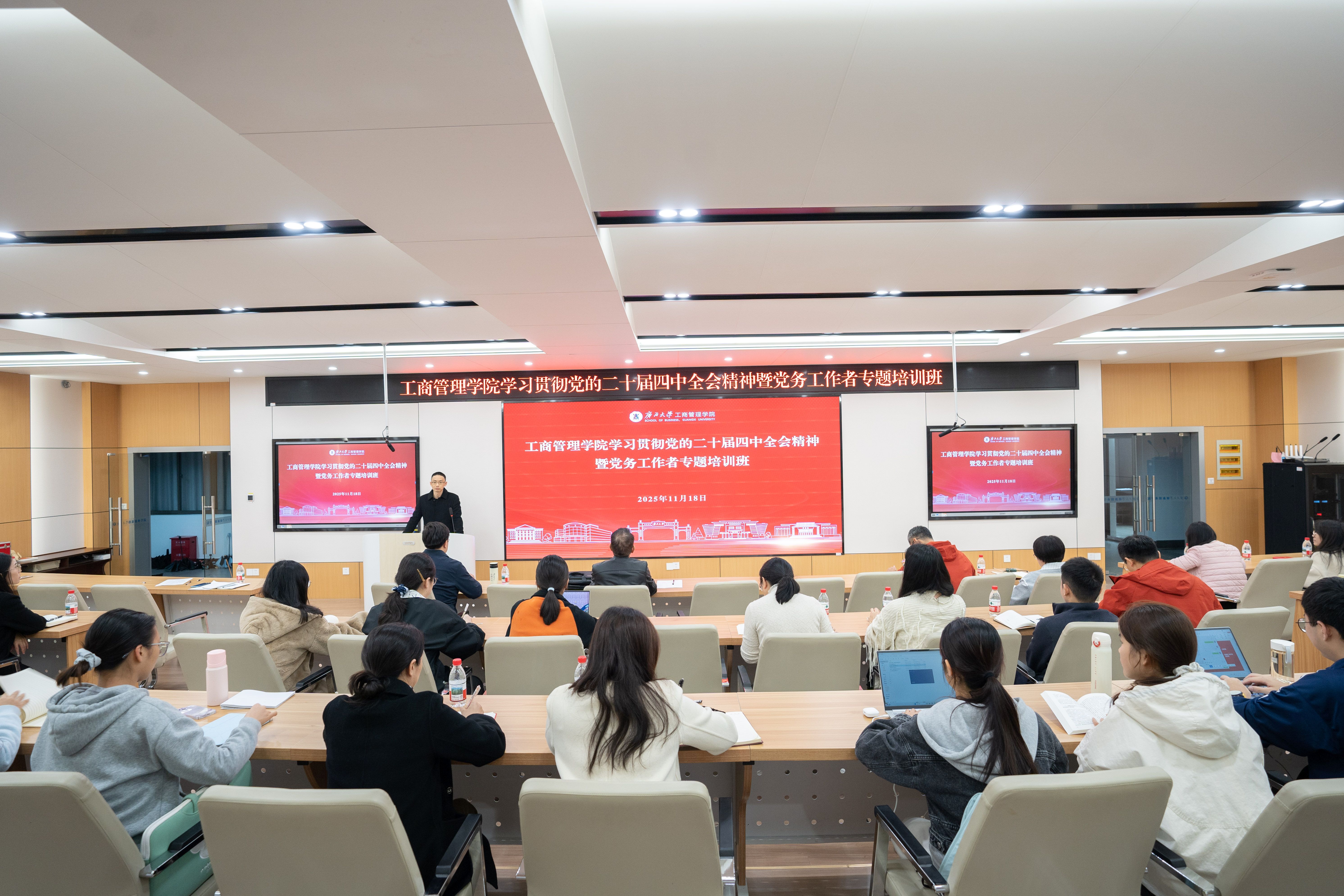 党委举办学习贯彻党的二十届四中全会精神暨党务工作者专题培训班,全院各党支部书记、支部委员、党建秘书处学生骨干参加培训。