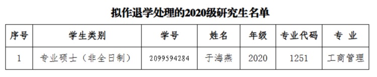 附件:拟作退学处理的2020级研究生名单