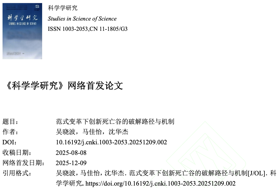 引用格式:吴晓波,马佳怡,沈华杰.范式变革下创新死亡谷的破解路径与机制[J/OL].科学学研究.